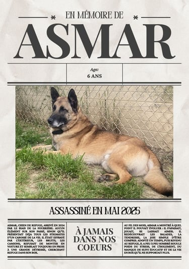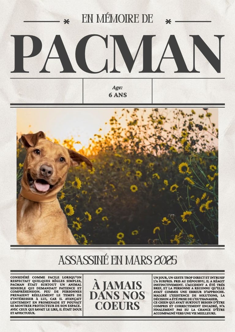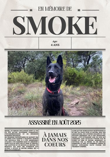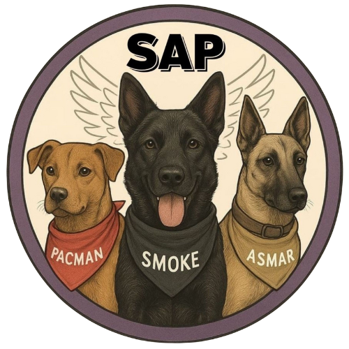 Notre association SAP Sauver Aider Protéger, porte aussi le nom de Smoke Asmar et Pacman en hommage à trois chiens injustement euthanasiés, malgré les efforts et la mobilisation de bénévoles pour leur offrir une autre chance.